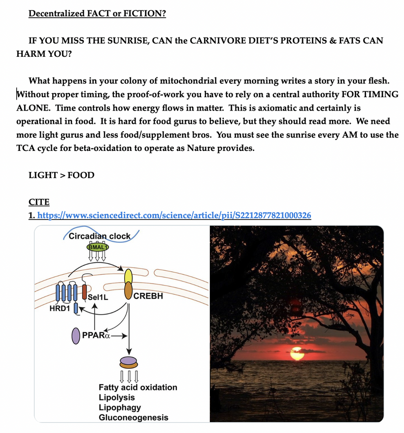 People call this quackery because it implies that the front lobe’s “advancements”(technology, artificial light, processed food) are actually biological traps that decouple us from the Lorentz-steered flux of the sun.