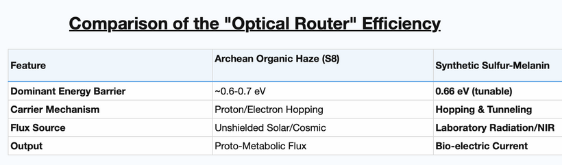 In solid-state physics, a material with a 0.66 eV bandgap (very close to that of Germanium) is essentially a Near-Infrared (NIR) harvester. In the Archean, where the atmosphere was a thick, hazy “optical router,” this specific energy level was the sweet spot for turning high-energy chaos into a controlled, low-voltage current.